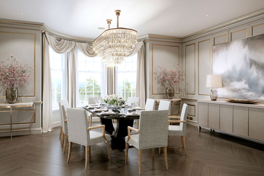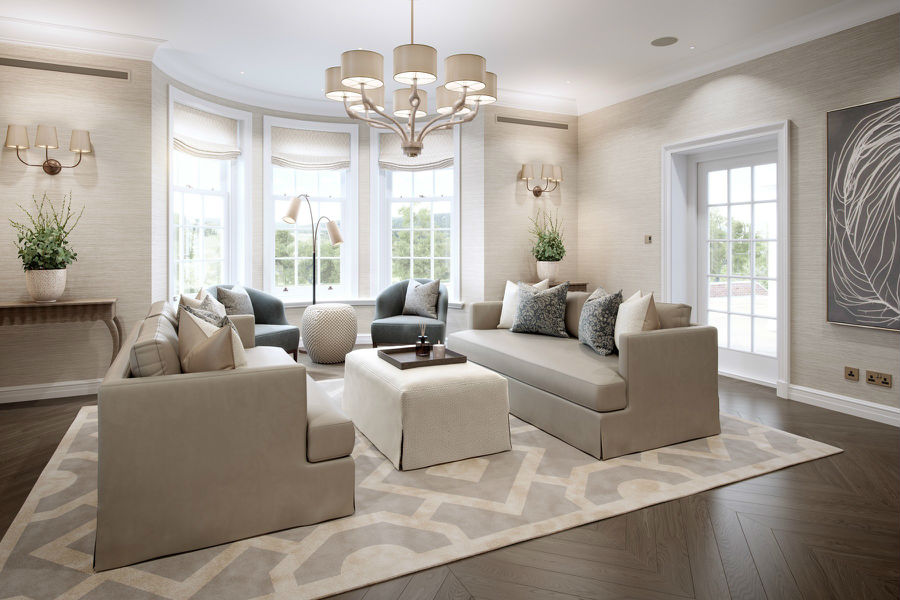 Laura Hammett全面翻新位于萨里的14,000平方英尺的家庭住宅,包括18米游泳池。完整的“交钥匙”家具和造型,包括许多定制的家具设计。