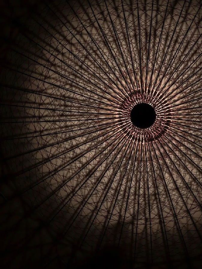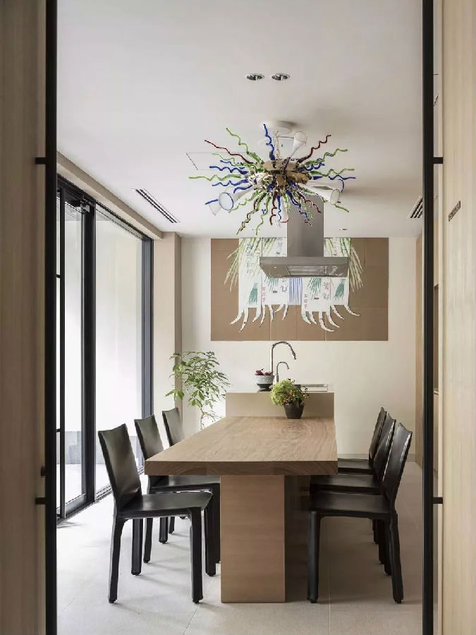 开放式厨房餐厅,天花板采用传统的日本伞状结构营造出光影效果。