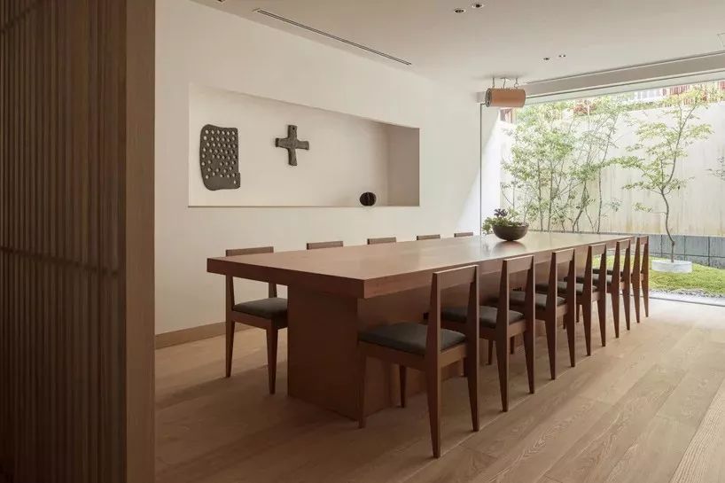 fuyai,是一座古典的町屋式建筑,设有前台以及装饰着masanobu ando艺术品的画廊空间。画廊空间通向一个休息区,那里有一个叫做tsuboniwa的小花园 - 这是京都房屋的典型特征,提供了一个享受自然和放松的私人空间。这样的设计模糊艺术画廊和酒店之间的界限,无论是masanobu ando的粉丝还是那些还不了解他作品的人们都会喜欢上这个现代空间。