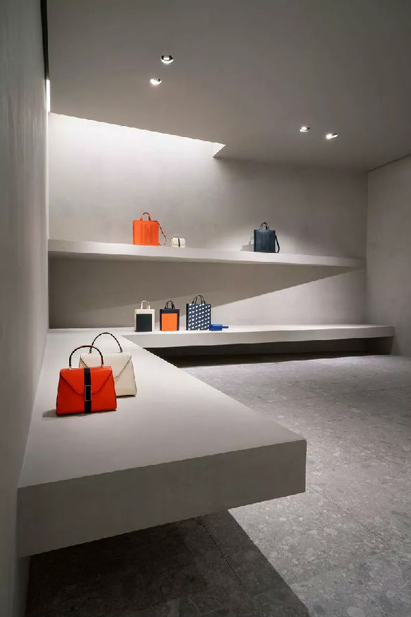 该店面,John Pawson通过灯光设计构筑了三个不同的空间表情,让客户享受微妙的情景式体验。丰富而细腻的照明设计细节,很好呈现了极简主义美学的偏执。