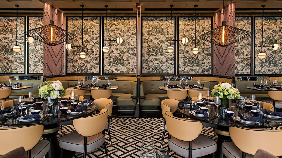 设计师在灯光方面亦尽显心思,运用 60 年代流行的水晶珠帘配合灯光,增加空间的亮度;墙上的装饰灯,在日光下仍能突显室内设计的细节。灯光的亮度随日夜转换,让食客在昼夜之间能细察室内灯光的微妙变化。