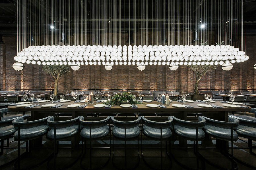 CATCH是少数几家您可以在一张大餐桌上享受难得的乐趣的基辅餐厅之一。公共餐桌是欧洲美食生活中的时尚潮流,也是该地区的骄傲。桌子由实心橡木制成,高度比平时常用的桌子要高一些,而在餐桌上方,有一个真正的艺术品 ——由450个玻璃球制成的大型吊灯。