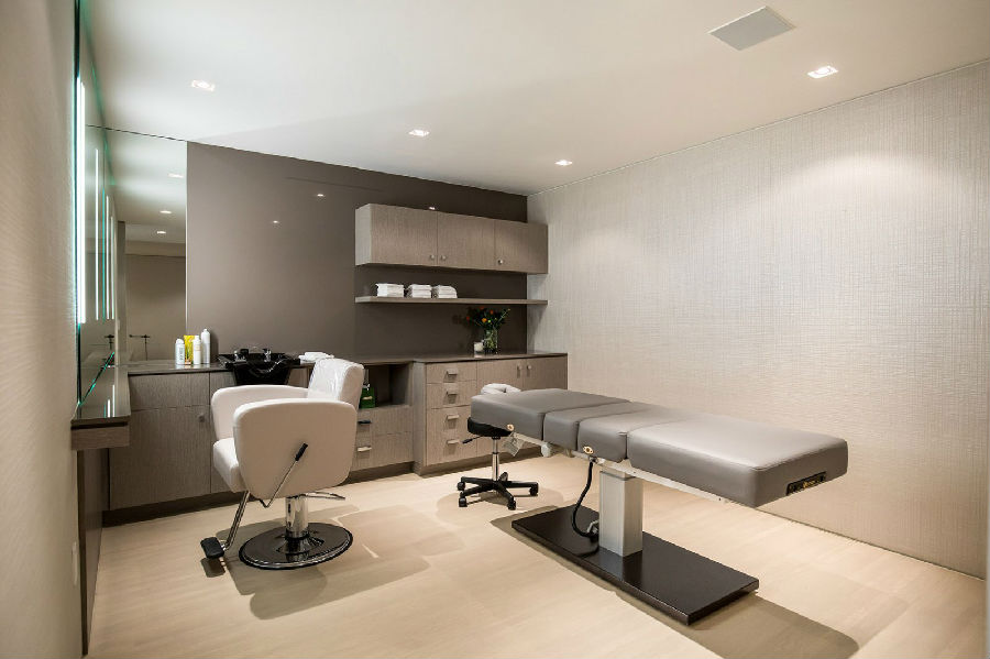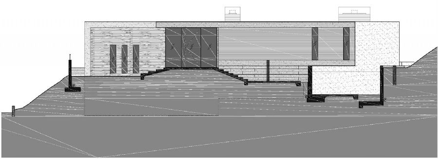 在立面上,粗糙的深灰色板岩与白色灰泥边框形成强烈的对比。全玻璃的枢轴旋转门迎接人们来到西海岸的当代生活,并带来远处的优美山景。穿过大厅,走下几级台阶,便到达了装有标志性竖向带状窗户和巧克力色釉面混凝土的化妆间。右侧和上方分别是两间带浴室的客房,所有台面均选用了Dekton XGloss的产品。