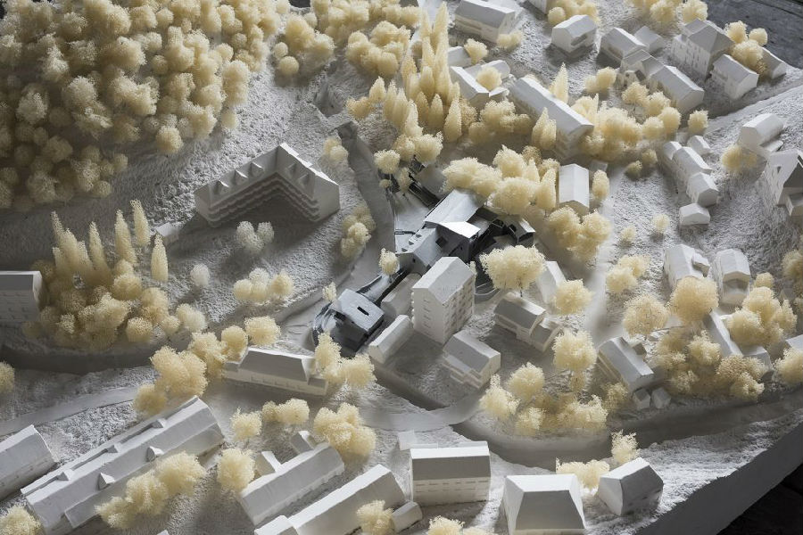 ▼ 中心体量南侧与通往东侧独栋体量的小径