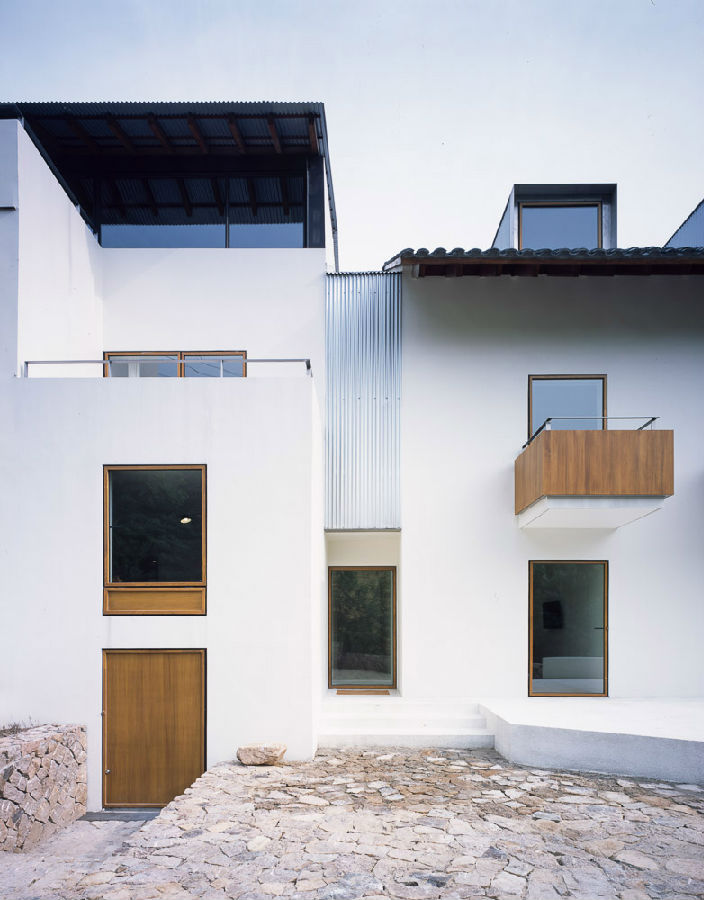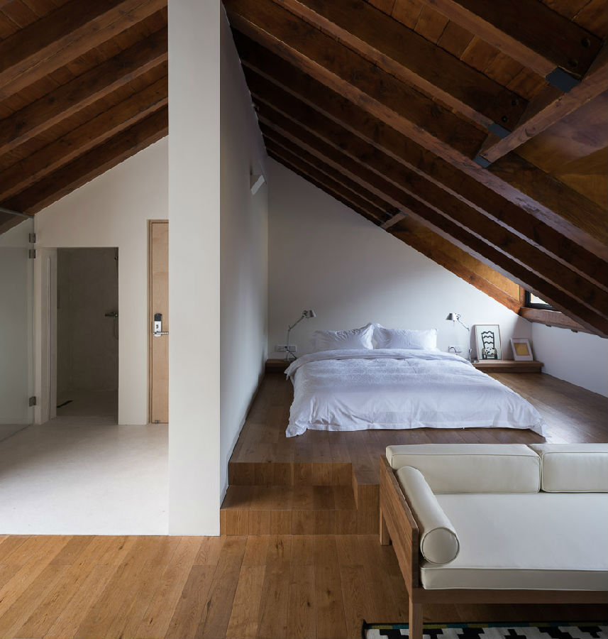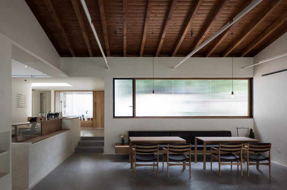 因此,设计的考量是在调和当下周边多变的限制,以及对未来动态的预判下同时来展开的。风景内化的策略不仅是建立对于不利外部的防御性,反之也让被渗透的内部成为景观中一部分。同时我们希望为小镇提供一些可共享的公共空间,例如拥有独立出入口的咖啡厅、小型展览空间以及放置在三楼的餐厅,这也造就了公共区与民宿之间特殊的流线关系,和多样的游走体验。
