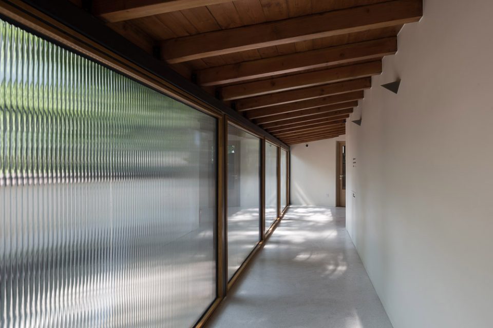 结构上我们采用了砖混与钢木屋架的混合体系,在造价与景观视线上取得一个最相对较优的平衡。最终的效果追求了一种视觉的精度,然而这个精度并不是为了突显这些细节。相反地,是为了让细节退后,让它成为背景的一部分,与景观的日常性形成关照。一方面,设计在细节层面主动预判了乡村建造中涉及材质交接、设备整合与供应链选择的问题,回避一些惯常做法带来的干扰。通过全程的设计参与,让我们有机会调动不同的供应链来展开一系列的协作。例如,钢木门窗体系、室内胶合木门、大型可开启电动窗的共同研发以及,多种灯具和家具的定制等等。另一方面,建造过程中面临着不可预期的误差或错误以及边界权属临时变动的突发事件,这些被动的局面也推动细节产生一系列即兴的化解。