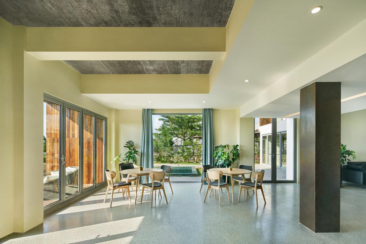 网格幕墙的运用包围了空间。它可以沿着整个长度打开,实现了与相邻公共空间的共享,而不只是一堵坚硬的墙或者是车库门。这个空间不仅有休闲的功能,也可以容纳停车场。