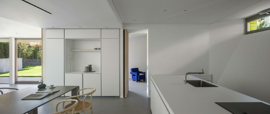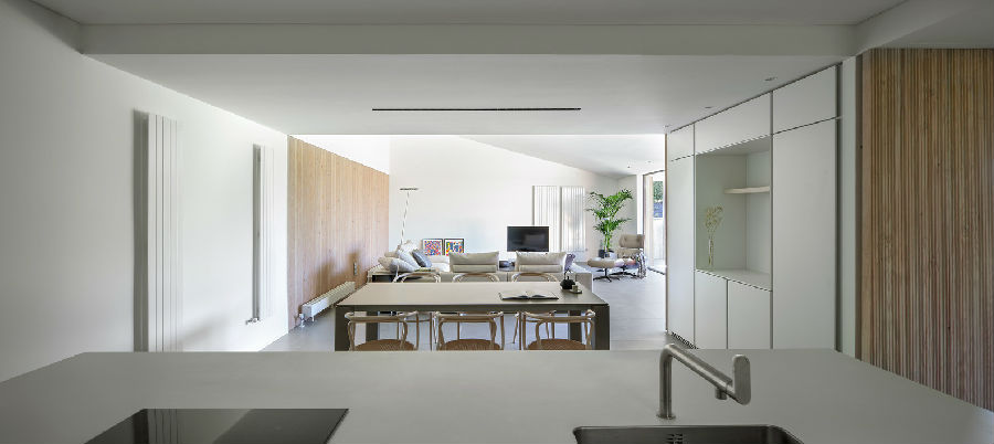 这是一座独立而内向的房子,它的主要空间和中央花园宁静而柔和,仿佛是一处避世而存的自然之地。如果有人站在这样一处空间的中心,就完全感觉不到这座住宅位于一片用地狭小而拥挤的居住区内。建材全部是纯天然。