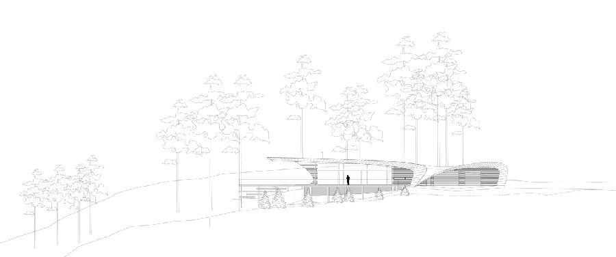 波纹住宅是由芬兰本土致力于建造木质建筑的公司 Polar Life Haus 监制的新兴原木木屋。由芬兰事务所 Seppo Mäntylä 设计,波浪住宅融合了实木,玻璃和钢材料的建造。独一无二的曲线设计是受到船舶和飞机造型作为灵感启发建造的。