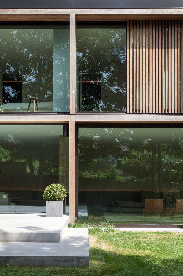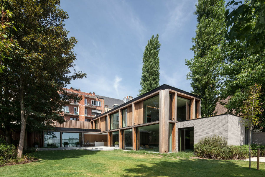 丈夫和妻子一直在比利时和美国之间往返工作,因而他们邀请当地工作室Steven Vandenborre为他们创造一个额外的舒适居住区域,以便无论何时回国都可以放松身心。他们还要求建筑师将玻璃的使用贯穿在整个设计中,以便享受花园的开阔视野。
