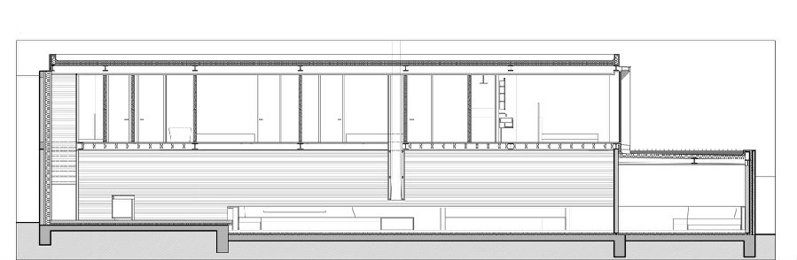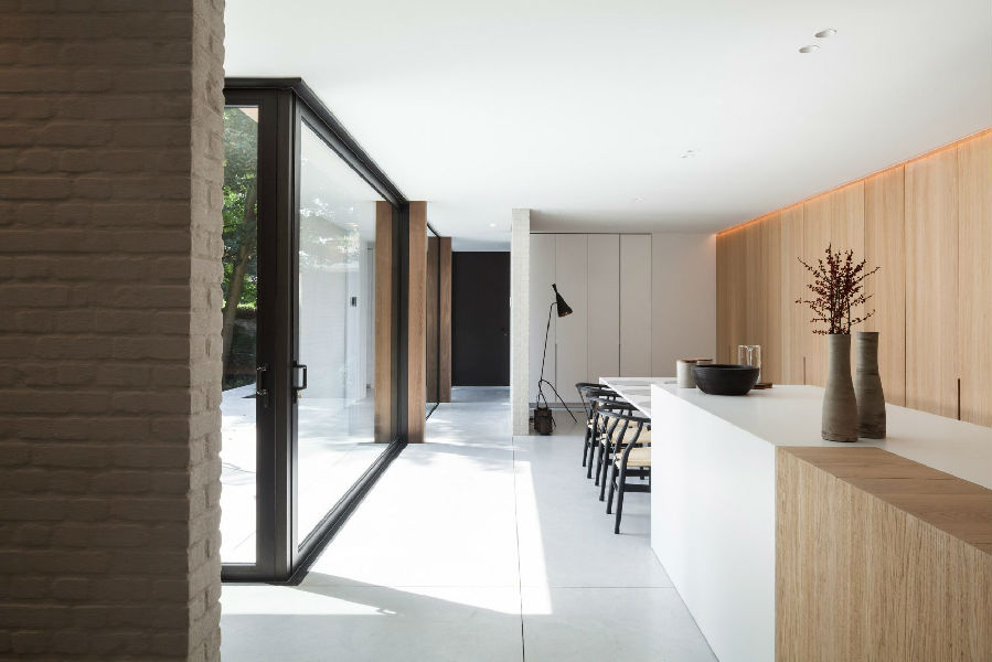 考虑到这一点,建筑师决定创建一个由欧洲灰框架和大型玻璃面板构成的窗格结构,并将建筑材料都放置在原有的住宅之中。