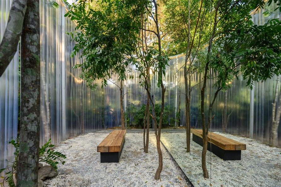 主要材料:肌理涂料、红砖、透水石、钢化玻璃、大理石、瓷砖、水磨石、木材、木地板、白色乳胶漆
